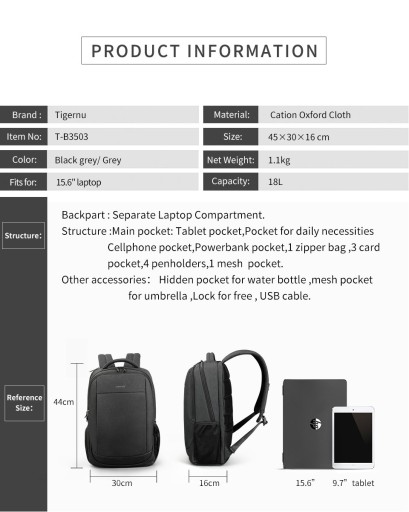 T-B3503 Городской рюкзак 15,6 дюйма TIGERNU