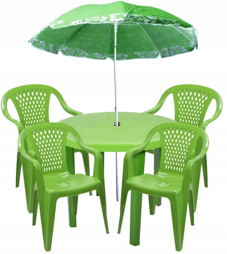 OKRĄGŁY STÓŁ + 4 KRZESŁA + PARASOL