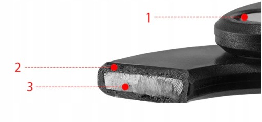 - Zabezpieczenie antykradzieżowe którego rdzeń zrobiony jest ze stopu stali a warstwa zewnętrzna pokryta została poliamidem, aby ochronić zapięcie przed utlenianiem i korozją.