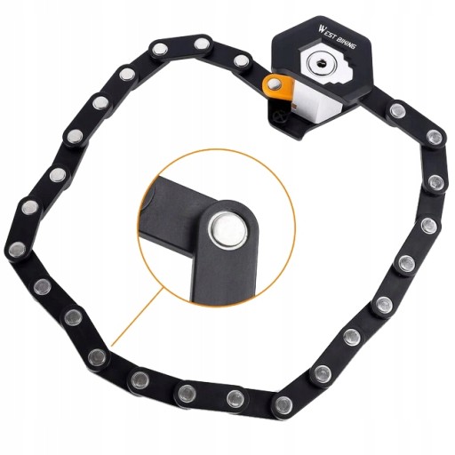 Ogniwa łańcucha antykradzieżowego złożone zostały na bardzo trwałe nity. Natomiast zamek wyposażona została we wkładkę antyrozwierceniową.