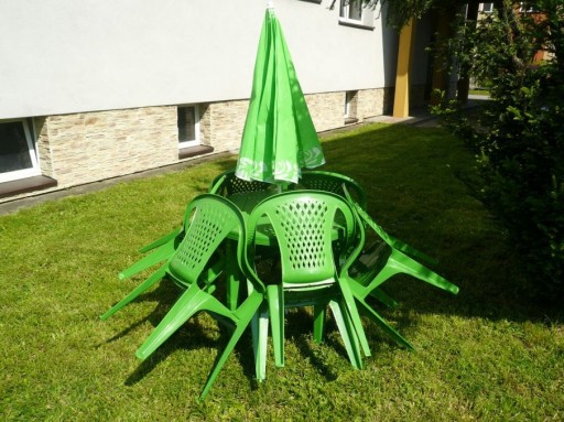 OKRĄGŁY STÓŁ + 6 KRZESEŁ + PARASOL