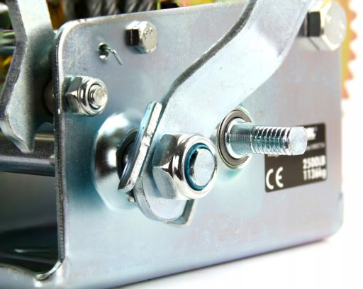 Dźwignia napędzająca bęben wyposażona jest w mechanizm zapadkowy. Wyciągarka wyposażona jest w solidny ruchomy hak z zabezpieczeniem oraz blokadę bezpieczeństwa ze sprężyną zapadkową