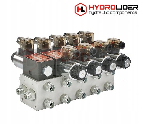 Z prawej strony przykładowe zdjęcie kompletnego rozdzielacza CETOP: