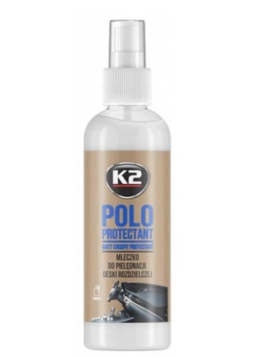 K2 POLO PROTECTANT MAT to bardzo wydajne mleczko do pielęgnacji deski rozdzielczej. Przywraca oryginalny, matowy wygląd, bez nadmiernego połysku. Dzięki temu redukuje powstanie uciążliwych refleksów świetlnych, zwłaszcza w słoneczne dni. Posiada filtr UV, który zabezpiecza deskę rozdzielczą przed płowieniem na skutek działania promieni słonecznych. Pozostawia długotrwały świeży zapach.