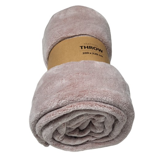 Cieplutki koc KRAF 220 x 200 cm wykonany z wytrzymałego i przyjemnego w dotyku polaru w jasnoróżowym kolorze