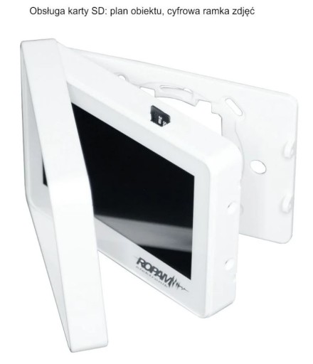 ➡️ Slot karty SD (funkcje): obsługa kart mikroSD/SDHC (8GB max.) plan budynku (tablica synoptyczna), cyfrowa ramka zdjęć (max. 100), rejestracja historii temperatury z czujników temperatury