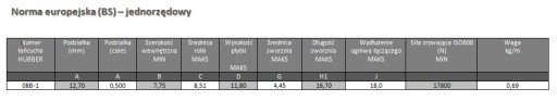 ŁAŃCUCH ROLKOWY 08B-1 1/2" HUBBER długość : 5 metrów bieżących