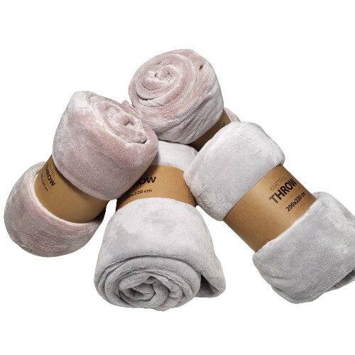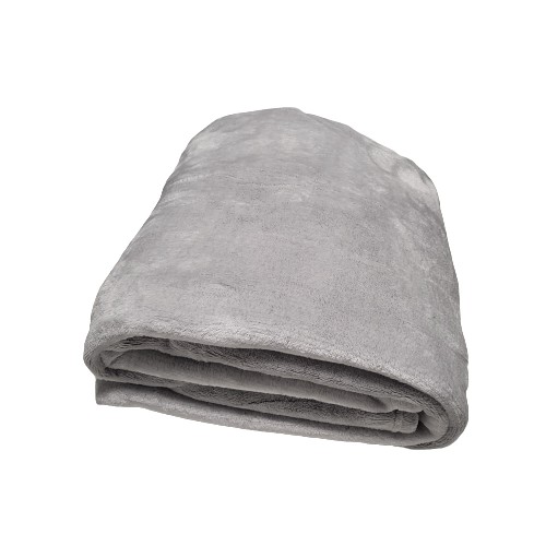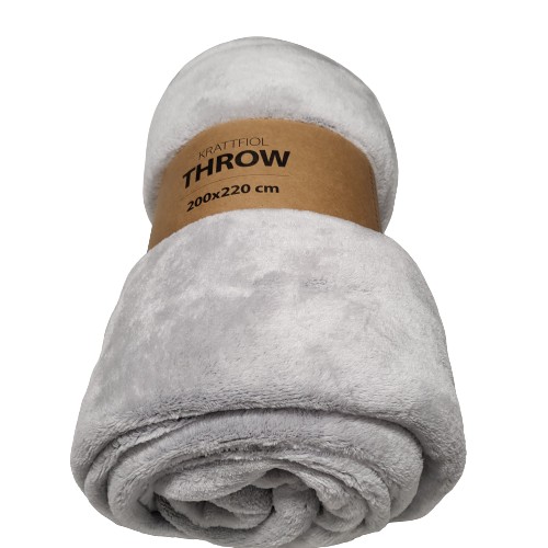 Cieplutki koc KRAF 220 x 200 cm wykonany z wytrzymałego i przyjemnego w dotyku polaru w jasnoszarym kolorze