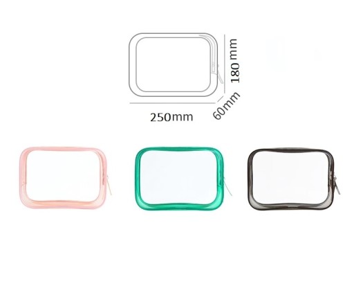 Kosmetyczka wykonana z przezroczystego plastiku PCV, który jest wytrzymały, wodoodporny i bardzo łatwy w utrzymaniu czystości, co gwarantuje jej długotrwałe użytkowanie. Sprawdzi się zarówno podczas podróży, wizyty na basenie czy siłowni. Pomieści nie tylko małe kosmetyki i przybory higieniczne ale również mały ręcznik, portfel czy telefon. Przezroczysty materiał ułatwi szybkie odnalezienie poszukiwanego przedmiotu. Kosmetyczka zapinana na zamek błyskawiczny.