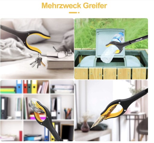 Chwytak JELLAS umożliwia łatwe zbieranie przedmiotów, takich jak monety, koperty, śmieci i tłuczone szkło, bez konieczności schylania się. Idealny dla kobiet w ciąży, osób starszych i niepełnosprawnych. Magnetyczne końcówki umożliwiają przechowywanie małych metalowych części, jak klucze i gwoździe.
