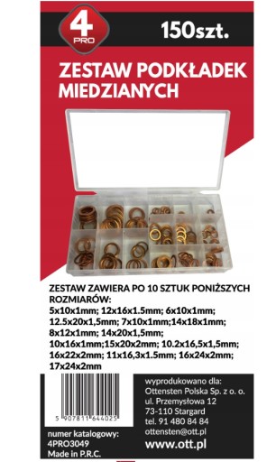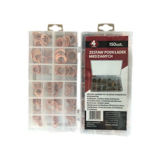 PODKŁADKI MIEDZIANE ZESTAW 150 SZT