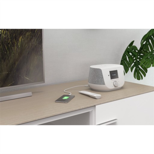 Radio zostało wyposażone w funkcję stacji ładującej. Wystarczy podłączyć swój smartfon lub tablet do radia za pomocą kabla USB, by naładować baterię w Twoim mobilnym urządzeniu.