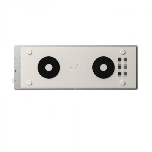 Producent dodał dwa miękkie rzepy z tyłu do mocowania osłon i akcesoriów. Może chcesz przykleić OP-1 field na pełnowymiarowej klawiaturze lub przyłożyć go do gitary? Użyj dołączonej taśmy samoprzylepnej i zacznij eksperymentować. Po prawej stronie znajdziesz dodatkowy głośnik pasywny, który znacznie poprawi bas i aby nie było wrażenia „zimnego metalu na kolanach”, aluminiowa obudowa została obłożona ciepłą, miękką w dotyku, twardą okładką.