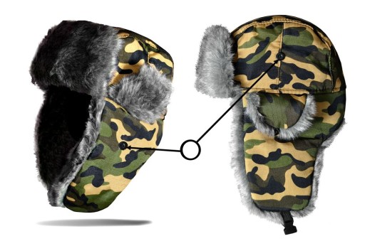 - Nauszniki zapinane na klamry (łączone z czapką elastycznymi taśmami)
