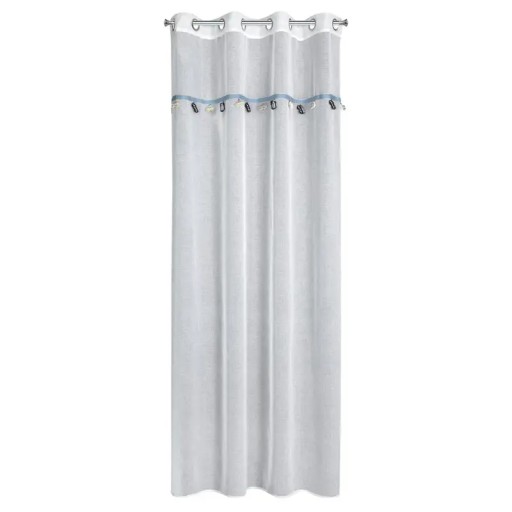 Firana z wszytą taśmą dekoracyjną z motywem dziecięcym, kolor biały