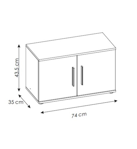 Szafka na buty wyposażona w dwie półki. Wykonana jest z pierwszego gatunku płyty laminowanej (o grubości 16 mm) firmy Kronospan, dzięki czemu jej powierzchnia jest odporna na ścieranie.