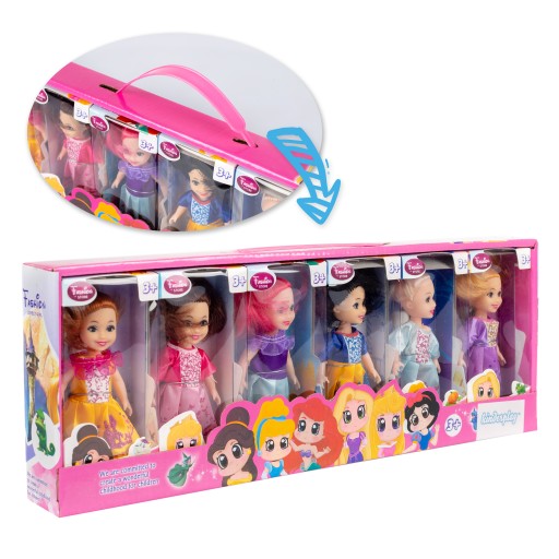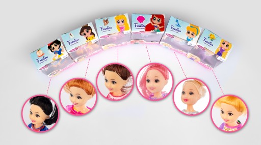 Zestaw zawiera 6 księżniczek, każda laleczka ma piękną minę oraz wyjątkowe ubranko z pięknymi butami.
