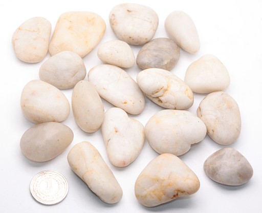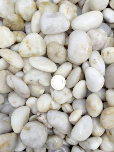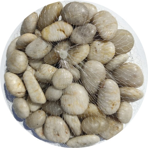 Oferujemy polerowane otoczaki 3-6 cm z dalekich krajów egzotycznej Azji zwanych Kamieniami Tygrysimi o odcieniu perłowo - białym .