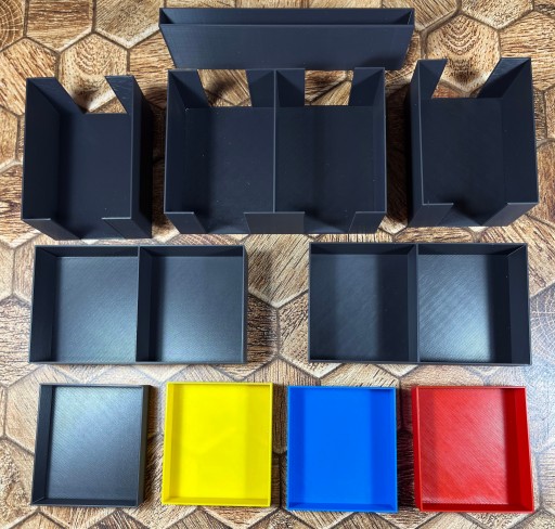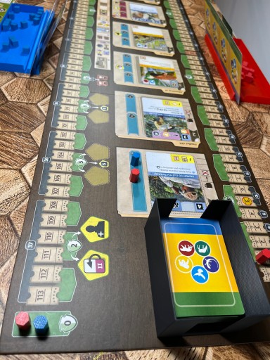 Insert wykorzystuje dostarczone z grą pojemniki, ale też oferuje sporo dodatkowego miejsca - zostało ono pomyślane na ewentualne dodatki, oraz dla wszystkich tych, którzy (tak jak ja) uwielbiają upiększać swoją grę na przykład modelami kiosków i pawilonów.