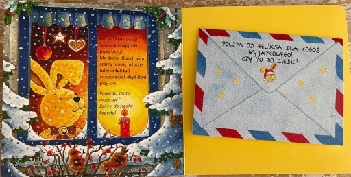 Feliksa poznały już całe pokolenia. Tym razem ten pluszowy zając - podróżnik przeprowadzi najmłodszych czytelników przez czas adwentu i Bożego Narodzenia. Duże okienka skrywają przed maluchami wyjątkowe listy. 2 książki: Pierwsze listy od Feliksa i Pierwsze świąteczne listy od Feliksa Autorka: Annette Langen Ilustratorka: Constanza Droop Tłumaczka: Monika Michałowska Książkę polecają: Obibooki, Wiola Wołoszyn Matka Wariatka, Maluszkowe Inspiracje, Bajanka, Guliwer, Bliskie Czytanie, Czytanie przed spaniem. Polecane dla wieku: +18 miesięcy