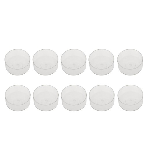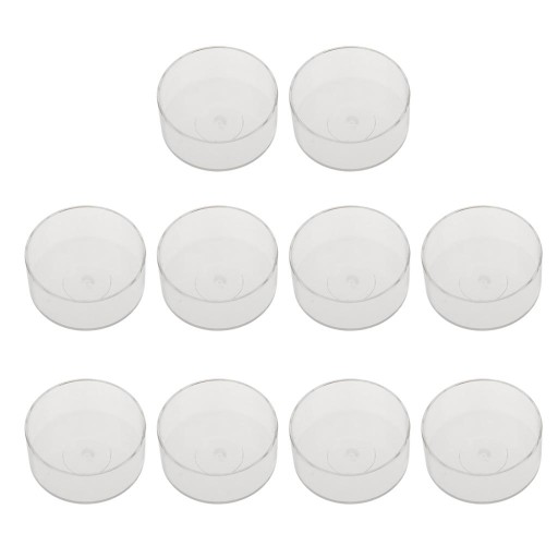 Jest wyposażony w 10 sztuk okrągłych 10 sztuk plastikowych kubków na świece tealight w kształcie sztuk wstępnie woskowanych zakładkami bawełnianych knotów do świec