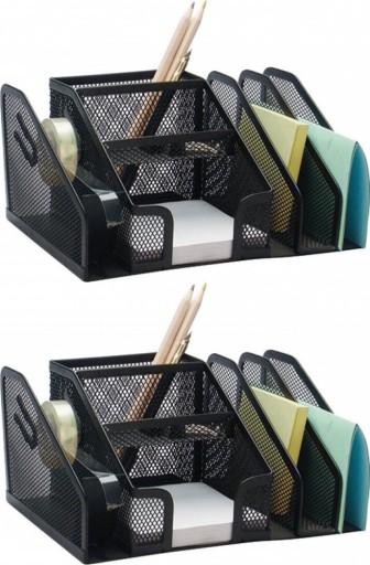 Przybornik na biurko, wykonany z metalowej siateczki powlekanej lakierem, jest niezbędny na każdym uporządkowanym biurku.