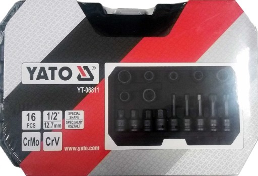 16-elementowy zestaw marki YATO, przeznaczony do zacisków hamulcowych. Elementy wykonane ze stali CrMo i CrV.
