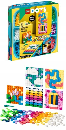 - Swoboda i pewność siebie — ten zestaw LEGO® DOTS to esencja swobodnego tworzenia. Nalepki do ozdobienia dają okazję do stworzenia malutkiego dzieła sztuki i zabawy połączonej z rozwijaniem pomysłowości oraz wytrwałości