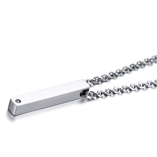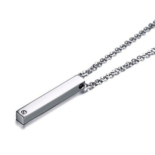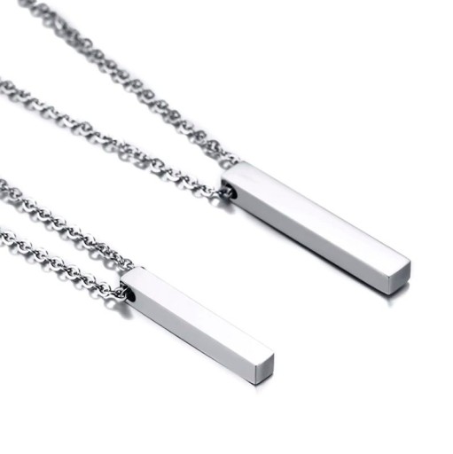 Śliczne, podłużne wisiorki przeznaczone dla Pary lub Przyjaciół w całości wykonane ze stali chirurgicznej 316L, często nazywanej stalą jubilerską, nierdzewną lub stalą szlachetną. Powierzchnia produktów jest idealnie wypolerowana i cechuje się wysokim połyskiem. Wisiorki mają podłużne kształty i są w formie 3D (prostopadłościan). Ponadto wzbogacone są o wysokiej jakości cyrkonie sześciokątne Cubic osadzone trwałą metodą. Dłuższy produkt opcjonalnie przeznaczony jest dla mężczyzny, natomiast krótszy dla kobiety. Oprócz funkcji ozdobnej stanowią one idealnie dopełnienie i wyraz waszej miłości. Są to idealne i stylowe wisiorki, które stanowią oryginalną ozdobę na szyję. Dodatkowo ich powierzchnia przeznaczona może być pod personalizację, poprzez wykonanie grawerunku, który sprawi, że produkty będą jeszcze bardziej wyjątkowe.