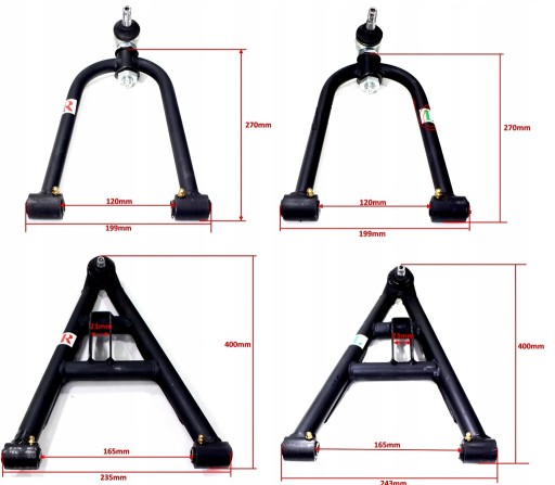Zestaw jest bardzo dobrze i solidnie wykonany zgodnie z fabrycznym standardem, jak i wymiarem w kolorze czarnym. W komplecie znajdują się 4x wahacze, które uzbrojone są w sworznie oraz tuleje metalowo-gumowe. Części są oryginalne, więc pasują bez jakichkolwiek modyfikacji. Dzięki sprawdzonej, wysokiej jakości zapewniają długą i bezproblemową eksploatację.