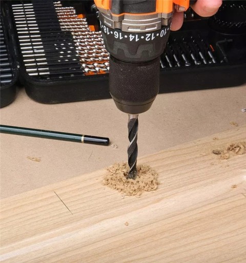 ✔️ 1. Wiertła wykonane z wysokiej jakości stali ulepszanej cieplnie zapewniającej długotrwałą wytrzymałość i trwałość, w tym specjalne akcesoria, takie jak otwornice, wiertła z łbem stożkowym i wiertła do drewna.