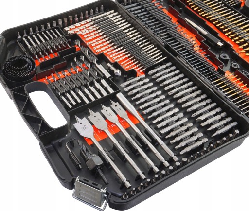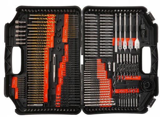 Zestaw akcesoriów składający się z wszystkich podręcznych 246 elementów umożliwi ci wykonywanie różnorodnych prac. W komplecie znajdują się wiertła do drewna, wiertła do metalu, wiertła do betonu, bity, wiertła piórowe, otwornice, bity, nasadki imbusowe, pogłębiacz stożkowy, klucz imbusowy, adaptery. Wszystko zostało umieszczone w solidnej walizce, dzięki której przechowywanie i transport tak dużego zestawu nie sprawi żadnych problemów. Poszczególne akcesoria mają przypisane konkretne miejsce w walizce, dzięki czemu łatwo będzie utrzymać w niej porządek. Wykonane ze stali szybkotnącej HSS.