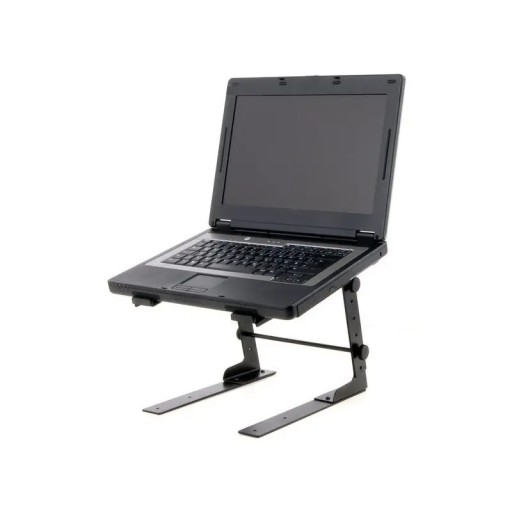 Ten stołowy stojak jest idealny do umieszczenia laptopa, odtwarzacza CD lub kontrolera oświetlenia w wygodnej pozycji roboczej. Mieści sprzęt o szerokości 22,5 cm lub większej i ma łatwo regulowaną wysokość od 17 do 34 cm. Stojak wykonany jest ze stali z wykończeniem z farby proszkowej i jest w pełni składany w celu zaoszczędzenia miejsca podczas transportu.