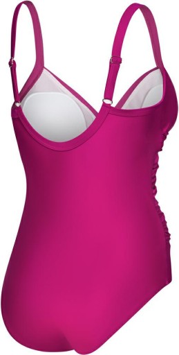 Specjalna wyszczuplająca podszewka z przodu kostiumu pomaga wysmuklić sylwetkę działając jak bielizna korygująca. Delikatne namarszczenia na biuście i brzuchu dodają kostiumowi subtelności maskując niedoskonałości figury.