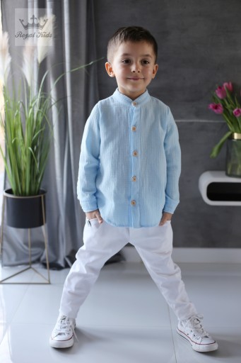 Koszula CHŁOPIĘCA MUŚLINOWA niebieska 80