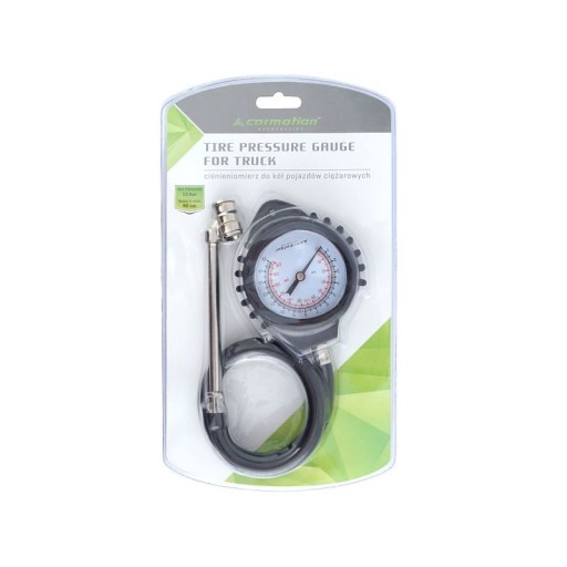 - Wysokiej jakości ciśnieniomierz przeznaczony do kół samochodów ciężarowych, osobowych oraz dostawczych