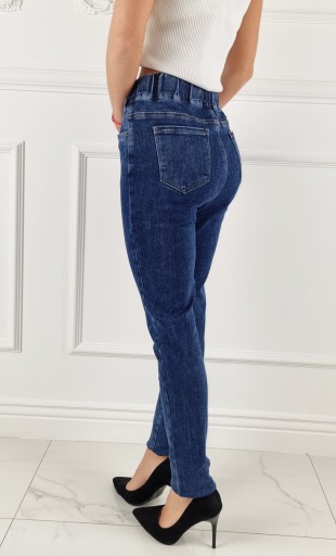 Spodnie wykonane z jeansu, o dopasowanym kroju . Spodnie posiadają wszytą w pasie szeroką gumę, dzięki której spodnie doskonale dopasowują się do sylwetki. Wygodne i delikatne można nosić do szpilek jak i do obuwia sportowego. Wykonane z dobrego gatunku materiału. Świetnie się układają super prezentują .