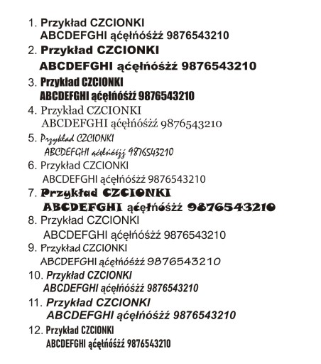 Czcionki do wyboru.