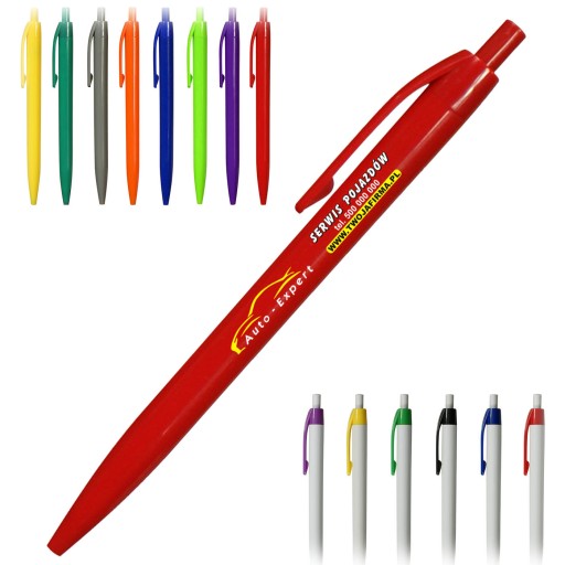 - Kolory długopisów można mieszać po 50 sztuk z zachowaniem tego samego koloru i wzoru nadruku dla całej partii.