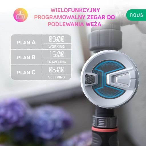 Inteligentny sterownik nawadniania Bluetooth NOUS L11 posiada 2 tryby podlewania: tryb zraszania oraz tryb przerywanego podlewania, a także umożliwia ustawienie odpowiedniego czasu rozpoczęcia podlewania, jego trwania (od 1 minuty - do 24 godzin) oraz częstotliwość (od poniedziałku do niedzieli).