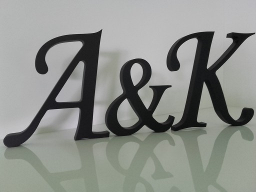 Litery wykonane są z bardzo twardego surowca jakim jest wysoko sprasowany MDF Szwajcarskiej firmy SWIZKRONO , pomalowane wysokogatunkową farbą w wykończeniu pół matowym.