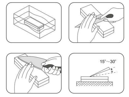 Ostrząc nóż staraj się zachować odpowiedni kąt pochylenia noża (15°-30°).