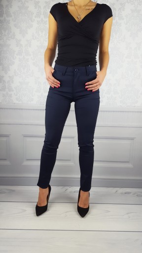 Eleganckie spodnie cygaretki, posiadają wysoki stan. Świetne połączeniu ze szpilkami, dzięki swojej uniwersalności, pasują niemal do każdej stylizacji. Elastyczny materiał podkreśla kobiecą sylwetkę. Spodnie są dopasowane, rozciągają się. Podkreśl swoje kobiece kształty! Spraw, by Twój codzienny Look był niepowtarzalny.