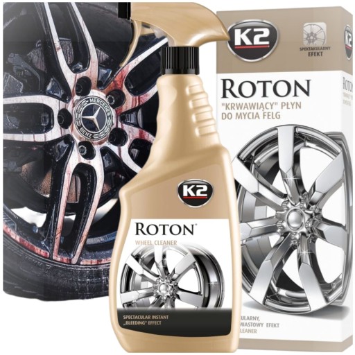 ✔️Płyn K2 ROTON rewelacyjnie eliminuje trudne do usunięcia zabrudzenia, w tym osady pochodzące z klocków hamulcowych oraz zanieczyszczenia drogowe, co widoczne jest poprzez przekształcenie koloru płynu na intensywnie czerwony (efekt "krwawienia").