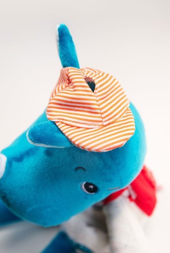 Przytulanka aktywizująca do nauki ubierania Nosorożec Marius belgijskiej marki Lilliputiens to niebanalne, miękkie i wielofunkcyjne źródło rozrywki i nauki dla ciekawskich maluszków. Ma postać radosnego niebieskiego nosorożca o imieniu Marius. Zabawka jest idealna nie tylko do tulenia czy zabierania na spacery, ale przede wszystkim do nauki ubierania się oraz nabywania i trenowania kolejnych sprawności manualnych. Dzieci bawiąc się, ćwiczą m.in. zapinanie suwaka (kurtka), guzika (kieszonka), rzepów (bucik), zatrzasków (plecak), wiązanie (drugi bucik), a także zakładanie i zdejmowanie niektórych części garderoby, np. ramiączek plecaka czy rękawów kurtki. Jest to tym łatwiejsze, że nosorożec i jego akcesoria pasują idealnie rozmiarami do małych rączek, są też perfekcyjnie wykończone i całkowicie bezpieczne dla dziecka. Zabawka rozwija małą motorykę, koordynację ruchów oraz autonomię, pewność siebie i samodzielność malucha.