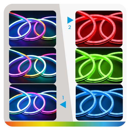 ✅ Taśma może również świecić tylko na jeden wybrany przez użytkownika kolor (2). Możliwości Taśmy LED NEON RGBIC są nieograniczone.