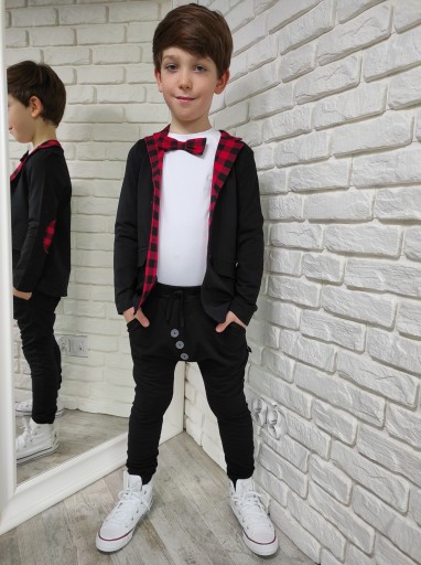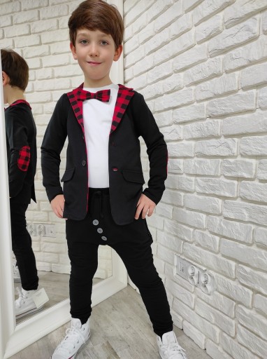 Черный жакет в красную клетку Style Kids 128