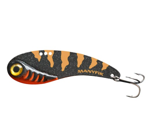 Na grzbiecie Cykady Manyfik znajdują się 3 otwory. Agrafkę mocujemy do jednego z nich, dzięki czemu osłabiamy lub wzmacniamy wibracje dostosowując pracę przynęty do konkretnego łowiska. Dodatkowo przez szybsze lub wolniejsze nawijanie linki, możemy regulować częstotliwość drgań prowadzonej przynęty.
