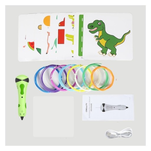 Inteligentny długopis 3D pracujący w bardzo niskiej temperaturze (temperatura głowicy do 60⁰C). Bezpieczny, naturalny, bezwonny i nietoksyczny filament. Posiada akumulator, który po naładowaniu pozwala na pracę około 1 godziny, bez użycia zasilacza. Komplet składa się z 1 długopisu 3D z przewodem zasilającym, zestawu startowego 8 kolorów filamentu PCL (16 metrów), 10 form do wydruku oraz nakładkę na formy, aby można było ich używać wielokrotnie.