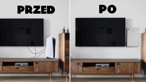 Produkt pozwala zawiesić konsolę stabilnie, nie martwiąc się o jej przewrócenie, jednocześnie pozwala zaoszczędzić przestrzeń wokół telewizora.